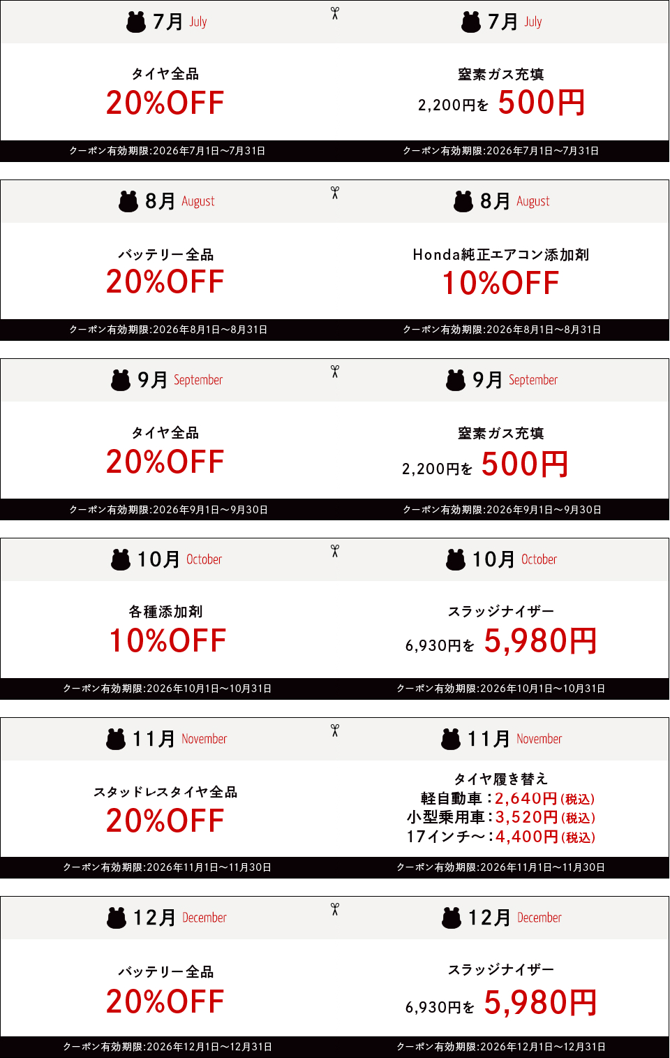 Honda Cars 熊谷では毎月クーポンを発行しております。