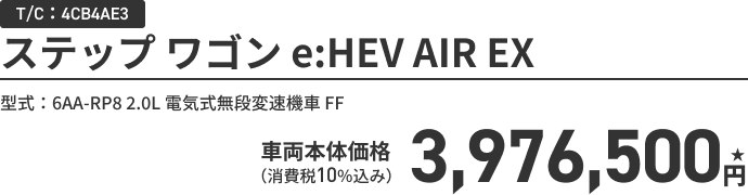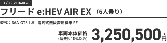 フリード e:HEV AIR EX(FF/6人乗り) ボディーカラー/有料色 メーカーオプションなし〈実質年率1.9% 36回(3年)払い〉車両本体価格(消費税10%込み) 3,250,500円★の場合