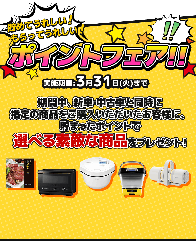 ★価格はすべて消費税 (10%) 込みの価格です。 車両本体価格には消費税以外の税金、保険料、登録等に伴う諸費用、 リサイクル料金は含まれておりません。