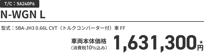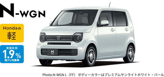 N-WGN L(FF) ボディーカラー/有料色 メーカーオプションなし〈実質年率1.9% 36回(3年)払い〉車両本体価格(消費税10%込み)1,631,300円★の場合