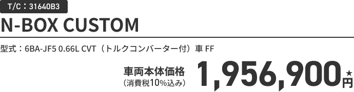 N-BOX CUSTOM(FF) ボディーカラー/有料色 メーカーオプションなし〈実質年率1.9% 36回(3年)払い〉車両本体価格(消費税10%込み)1,956,900円★の場合